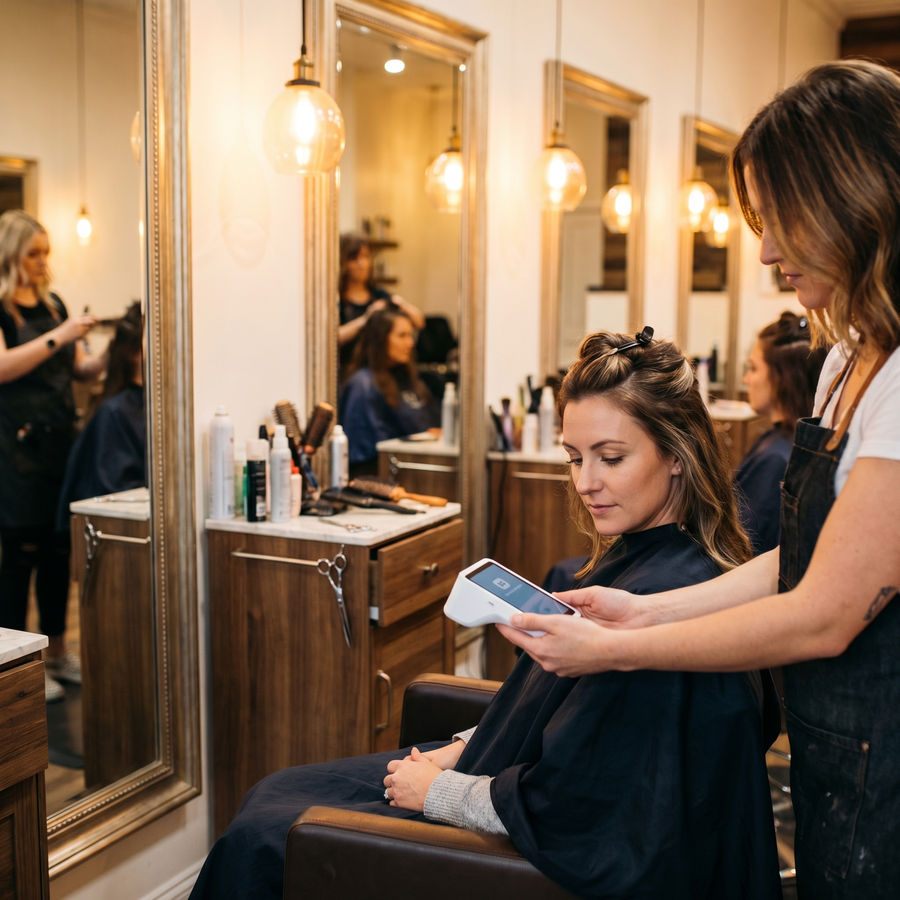Dans un salon de coiffure, le moment du paiement marque la fin d'une expérience. Le…